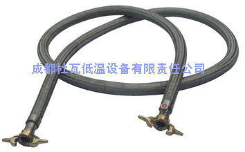 不锈钢波纹管,外层为不锈钢丝护套。产品挠性好,补偿量大,绝热性能优良,并配有真